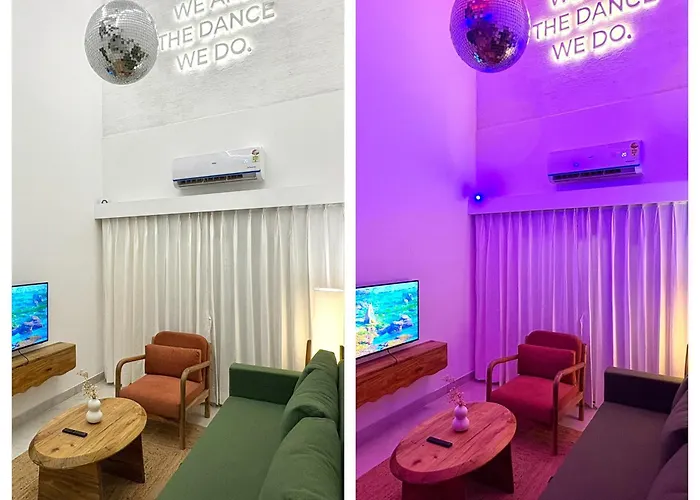 Candolim 2Bhk Duplex Apartment With Pool & Balcony - Unique Disco Theme, Near Beach is situated around a 5-minute walk from Fabindia and 40 km from Goa airport. At this apartment, Wi-Fi and free private parking are also provided.